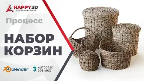 Процесс моделирования набора плетёных корзин для 3ddd.